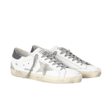 Golden Goose Super-Star trainers in smooth white leather with dark grey back and suede leather star(Men)